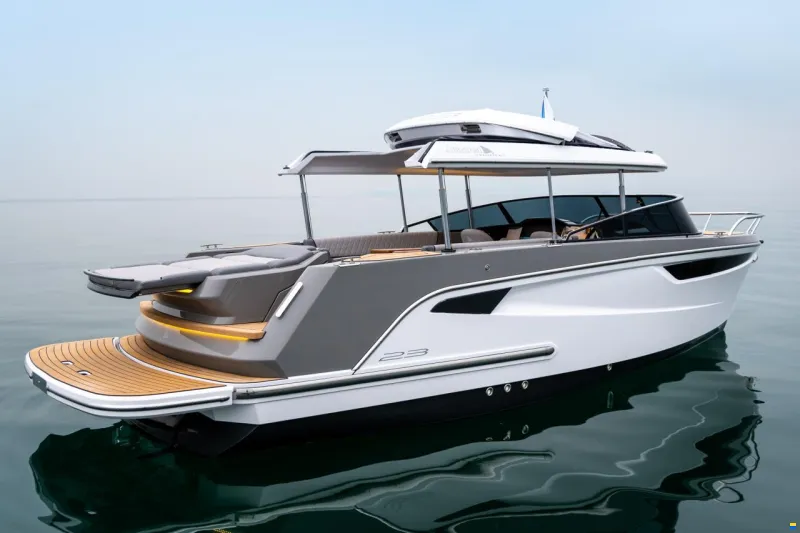 TOP Gelegenheit, da zweimotorig und viel vielen Extras ausgestattet. Kein Sportboot, sondern leise vor sich hergleiten. Sonnenliege vorne auf dem Bug, Sonnenliege hinten am Heck und kompletter wegnehmbarer Bettaufbau im Cockpit. Das patentierte hydraulische ferngesteuerte Verdeck schliesst das Cockpit komplett. Keine Abdeckplane notwendig!!
