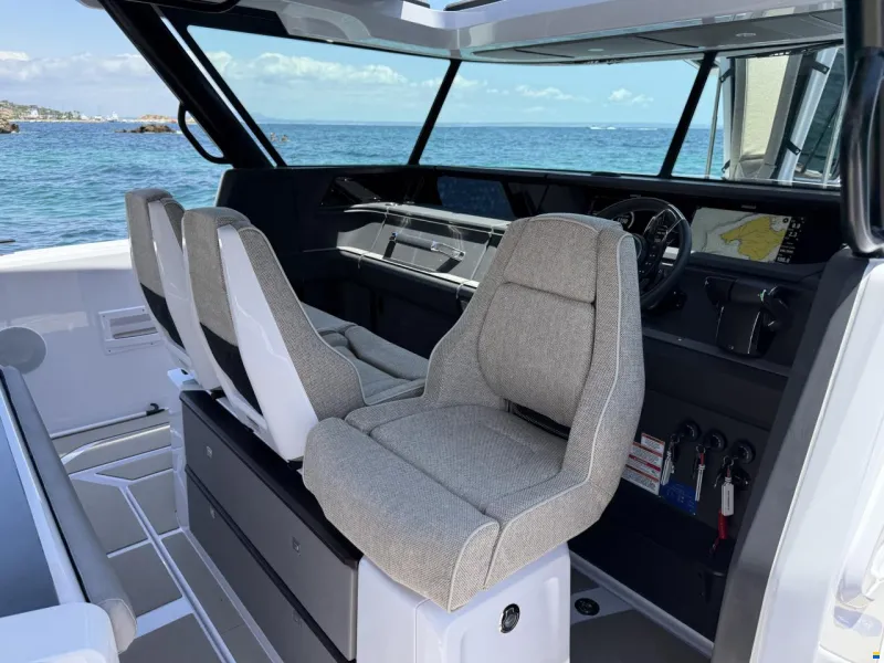 Informationdisplay 2x 12" Kartenplotter unter Glasscheibe mit Axopar Interface