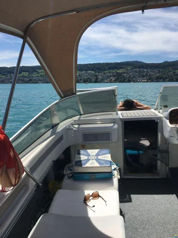 Über 30-jähriges aber gut erhaltenes Motorboot. Sportlich und flexible Ausstattung mit Liegesitz, grosszügige Liegefläche, Bade- und Ankerplattform wurden nachträglich montiert - top für Landungen. Elektrischer Anker, teilweise Erneuerung der Bezüge. PortaPorti.