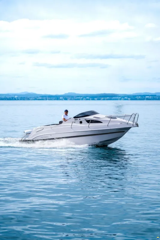 Il DRAGO 665 e la scelta ideale per chi cerca una barca sportiva compatta e completamente equipaggiata con cabina per i laghi svizzeri. La sua larghezza slanciata di soli 2.26 metri la rende il partner perfetto per gli ormeggi stretti, mentre gli interni generosi e la dotazione completa non lasciano nulla a desiderare.