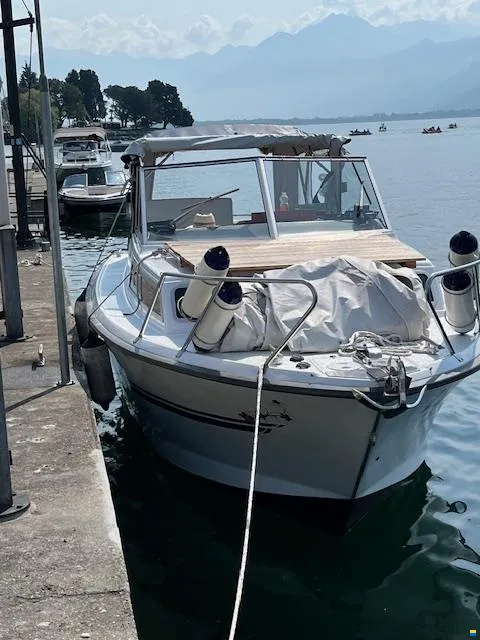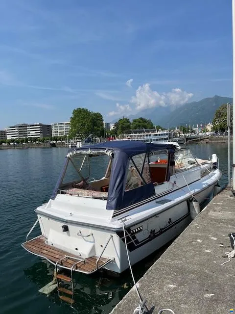 Nostalgisches Liebhaberobjekt, gut gepflegt und gewartet. Ideal für ein Paar oder eine kleine Familie die kostengünstig den Lago Maggiore geniessen wollen. Als Kabinenboot ist es gut motorisiert und man kann Wasserski und Wakeboard fahren oder Wasserspiele ziehen. Das vorhandene Material kann übernommen werden. Es lässt sich mühelos ein paar Tage auf dem Boot leben und geniessen. Wassersystem ist vorhanden, aber nicht angeschlossen. Eine Chemie-Toilette ist vorhanden. Auf dem Deck lädt eine Teakholz-Terrasse zum verweilen ein. Man kann entweder als Cabrio fahren oder mit dem vor Sonne schützenden Campingverdeck.