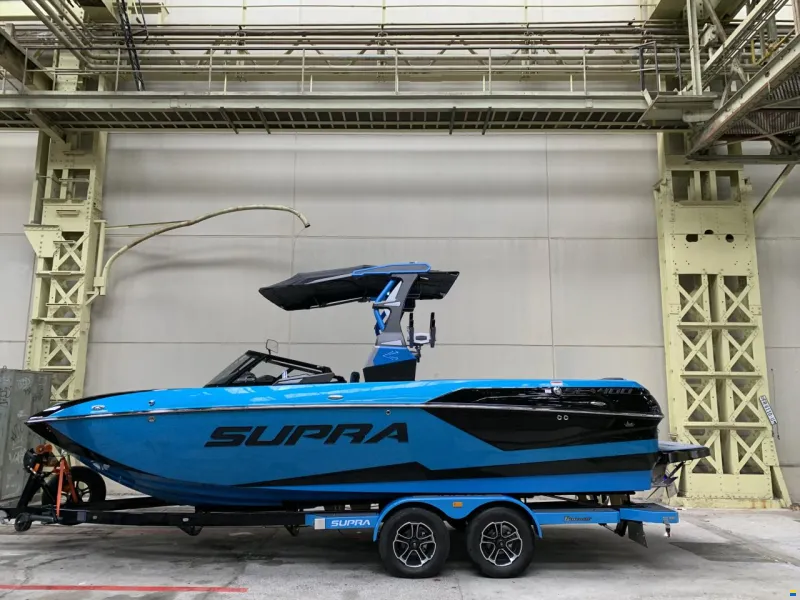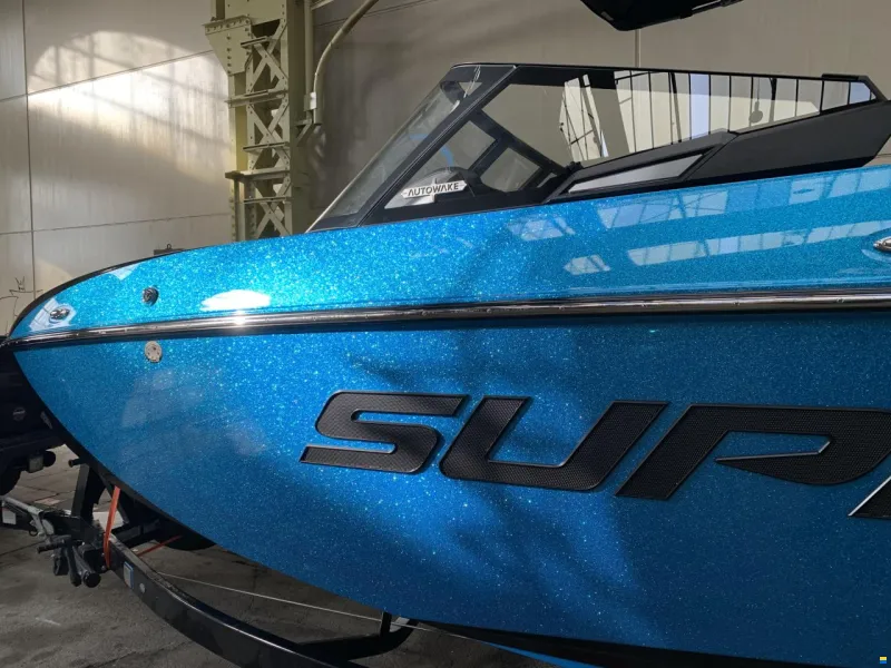 Supra Boot Standard: Ford Raptor Engine 6.2L 16-Valve V8 400 (bei SE 450), Swell Surf 3.0 System, Autowakesystem, Supra Launch Feature, Autolevelsystem, Props CNC 16", Ballast Sensing for Automatic shutoff when full, Steering Wheel w/Controls, Vison Control System, Cooler, Dualbatteriesystem, FXoneTower, Bimini with Surfstorage, JL Audiosystem with Ampl., station for Mobile with charcher, Walk-Through Transom (not SR) Vinyl Base Chill Tech, Driver seat with heather u/o, Gaterstep Nonskid 2 colors