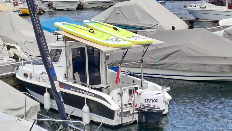 La barca è in buone condizioni. Il motore è stato cambiato con uno nuovo a settembre 2023, costo: Fr. 13'800.00, montaggio incluso. Ha solo 40 ore di funzionamento, quindi è praticamente nuovo. Anche i cuscini sono nuovi. Anche il parabrezza è stato sostituito con uno nuovo, perché quello vecchio era graffiato.