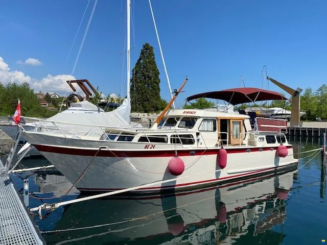Ab Mai ist das Schiff bereit für eine Probefahrt. Es ist top Ausgestattet, verfügt über einen sparsamen Motor, 2 starken Verbraucher Batterien (je 180Ah) sowie separate Batterie für Bugstrahler. Dank grossem Frischwasser und Fäkalientank kann man lange auf See bleiben. Der Steuerstand oben ist grosszügig überdacht und kann rundum geschlossen werden.