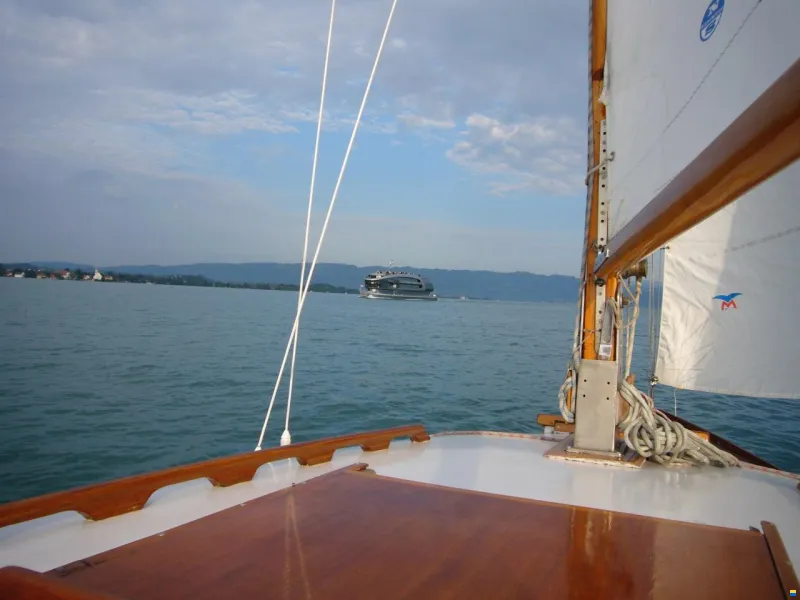 2011 kenterte das Boot in einem Fönsturm an der Boje und wurde als Haftpflichtversicherungsfall für EUR 18'250 totalsaniert. Die Dokumentation mit Bildern ist einsehbar im Anhang dieser Anzeige. Der Gutachter schätzte die Kosten für den Aufbau eines vergleichbaren Kajütkreuzers auf EUR 150'000 und taxierte den Wiederbeschaffungswert eines Schiffs ähnlicher Bauart und ähnlichen Zustands auf EUR 30'000. Nach dieser Bojen-Kenterung war das frisch renovierte Schiff immer in einem Hafen - zunächst in Langenargen und dann in einem kleinen Privathafen am bayerischen Ufer (daher auch die Neuzulassung durch den TÜV Süd im Juli 2024 ohne Mängel).