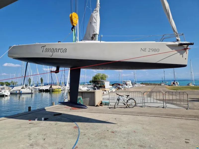 • 2 TackTick Raymarine-Anzeigen am Mast, unter anderem für Geschwindigkeit, Wind und Tiefe