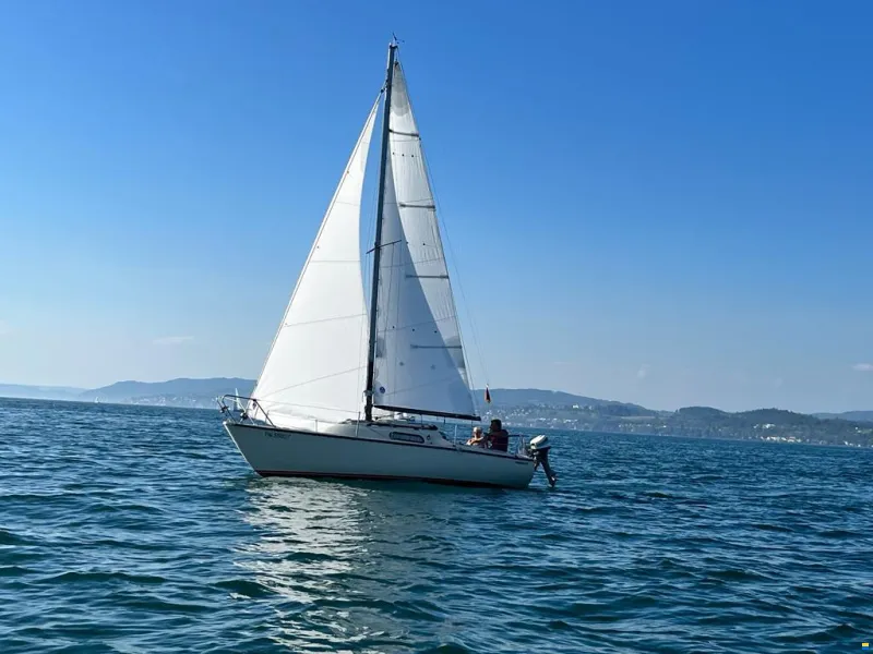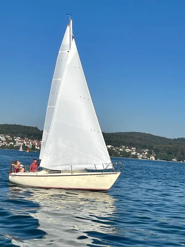 Le vele NorthSail (randa e genoa) hanno 3 anni e sono in ottime condizioni. Anche il sistema di avvolgimento Fluex ha 3 anni. In dotazione c'è l'equipaggiamento completo con parabordi, cime, cime di ormeggio, tendalino e, naturalmente, lo spinnaker. Revisione TÜV valida fino al 2027, con omologazione per il Lago di Costanza.