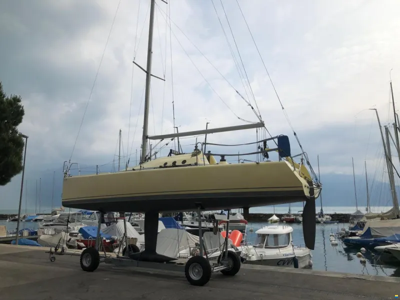 Vendu avec un ber d’hivernage. Avec 1 grand voile, 1 génois, 2 spis + 1 spi asymétrique, easy bag, verin en inox changē en 2025. Glacière électrique + 12v. Bateau sur le lac Léman au port de La Tour-de-Peilz.