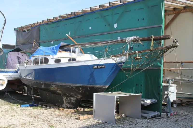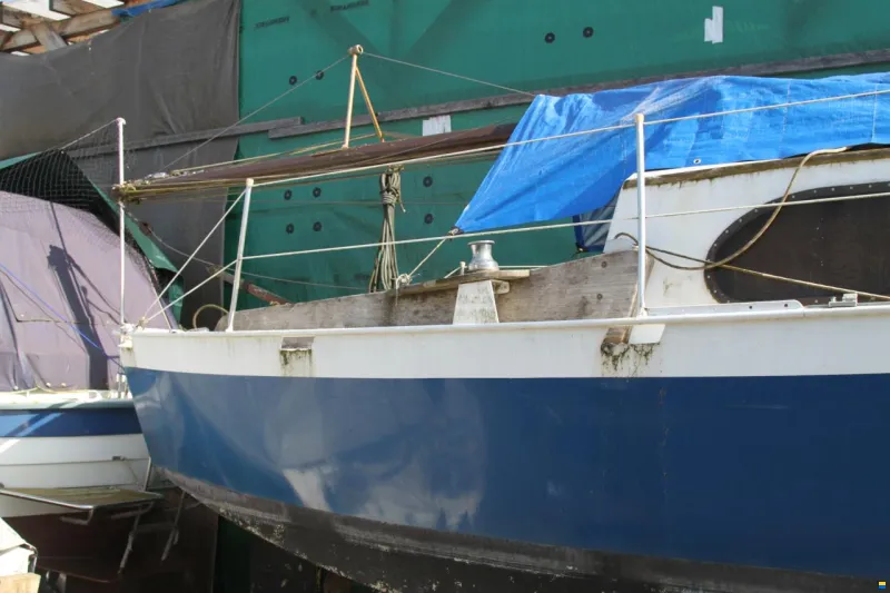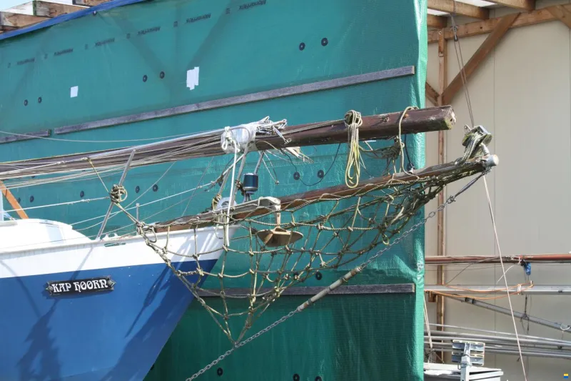 Holzteile müssen teilweise neu aufgefrischt/gestrichen werden (ein oberer Saling beim Abmasten gebrochen).