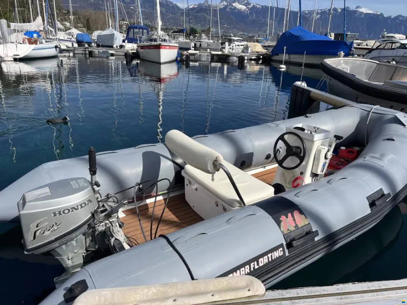 Je propose à la vente mon bateau semi-rigide. Il est en bon état ; les tubes sont rigides, n'ont pas été réparés et sont d'origine. Le moteur Honda 8 CV fonctionne bien et a récemment été révisé. Aucun permis n'est nécessaire pour conduire ce bateau. Avec une personne à bord, la vitesse maximale est de 30 km/h.