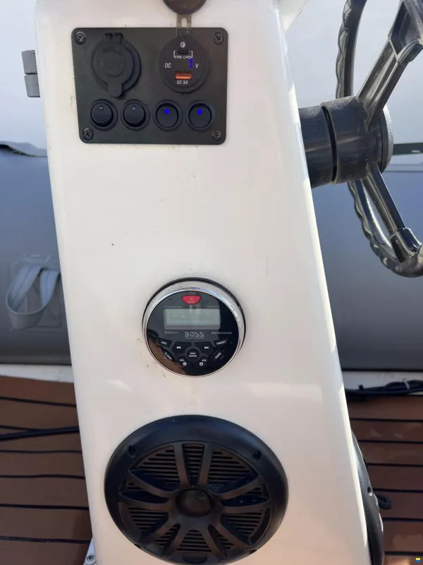 Le bateau dispose de deux haut-parleurs marins intégrés avec une unité de commande centrale (Bluetooth), ainsi que d'un chargeur de téléphone 12 V intégré + voltmètre. La batterie est en très bon état et se recharge bien grâce au moteur.