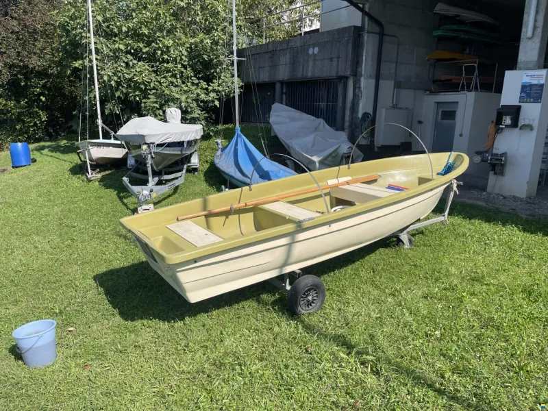Schweizer Glasfaserboot in gutem Zustand. Wird günstig verkauft, da ich ein anderes Boot gekauft habe. Mit Rudern, mit Originalpersenning, ohne Motor und ohne Wagen/Trailer. Zwei abschliessbare Staufächer. Abholung nach Absprache in Walchwil.